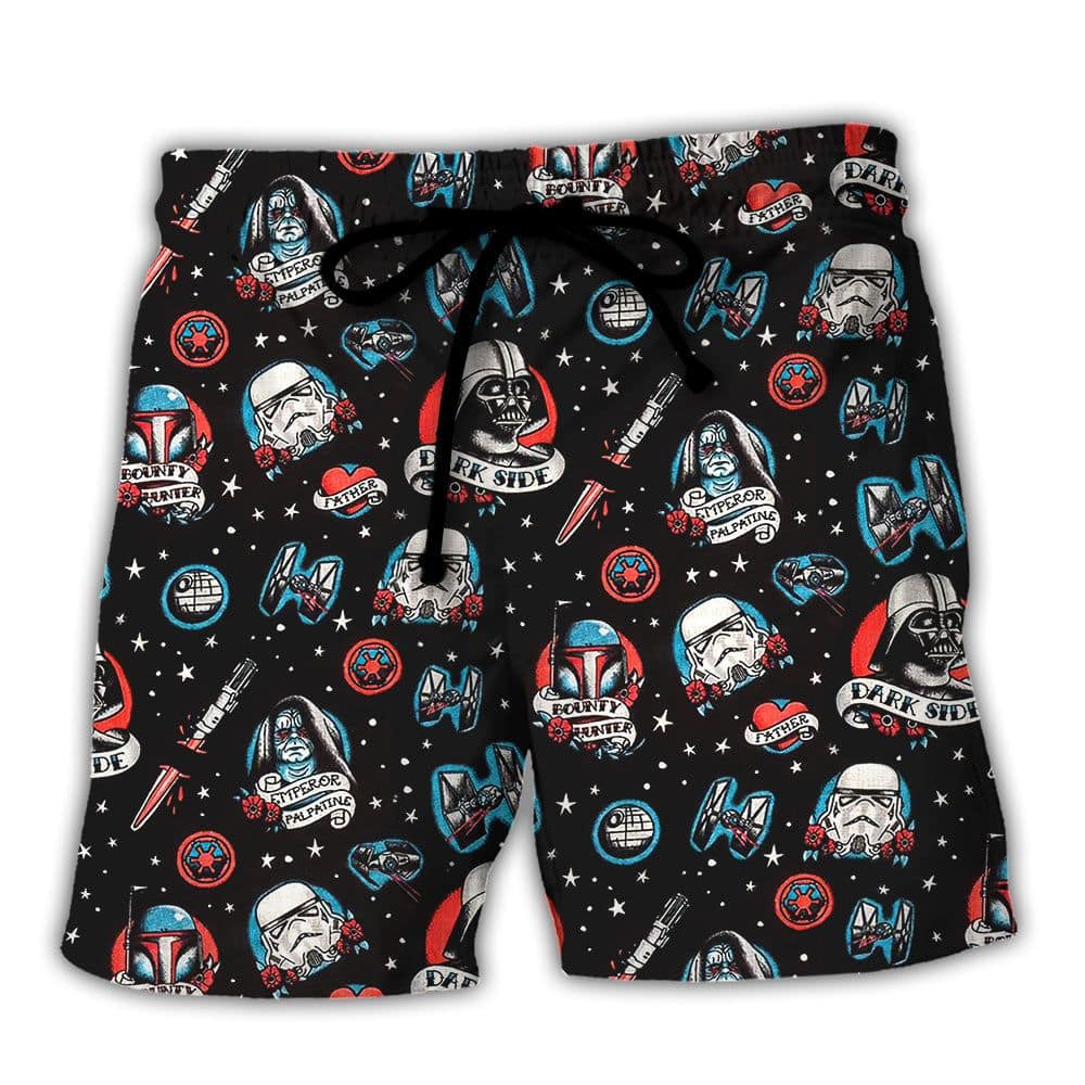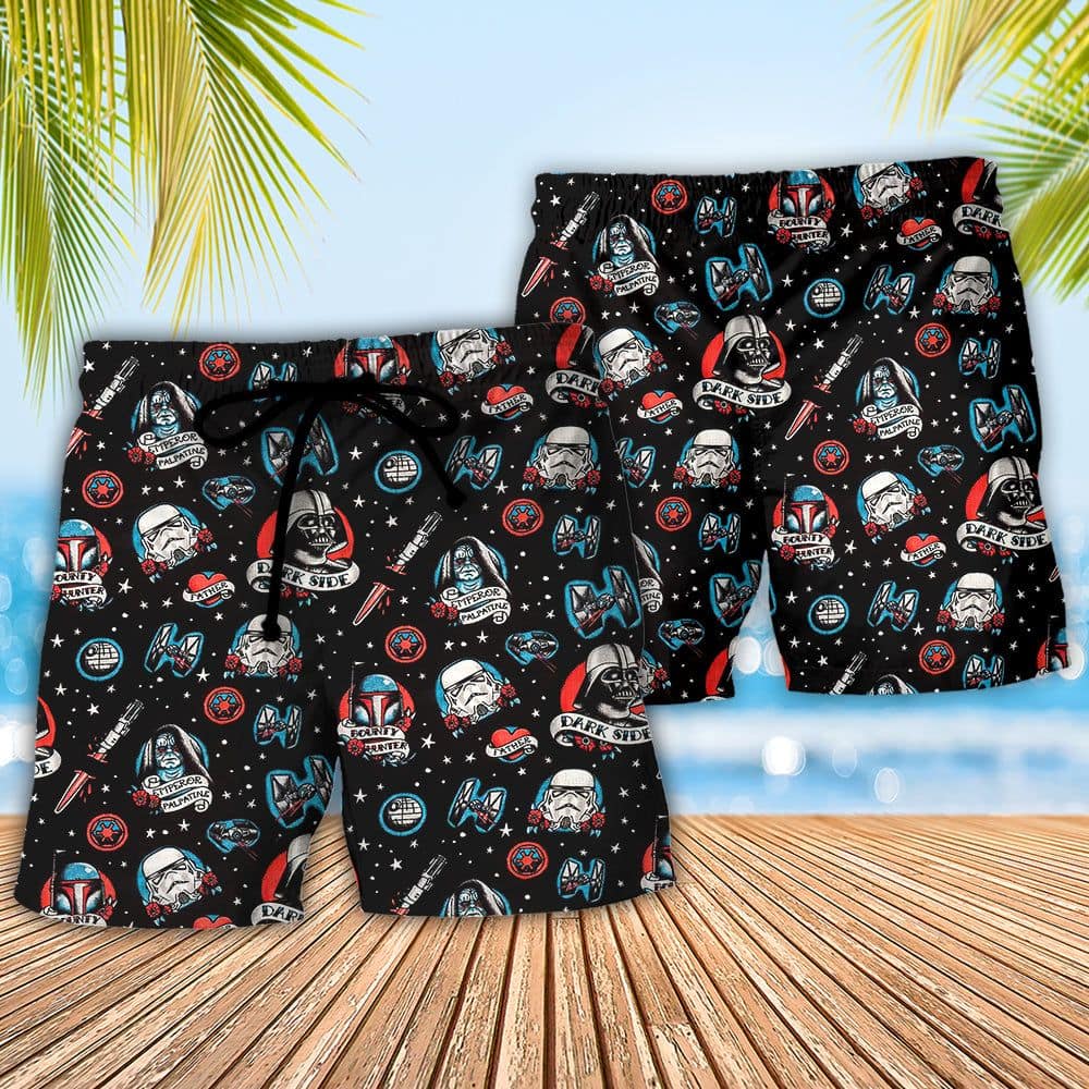 Starwars Darth Vader Storm Trooper Dark Side Black Trendy KLA Hawaiian Beach Shorts