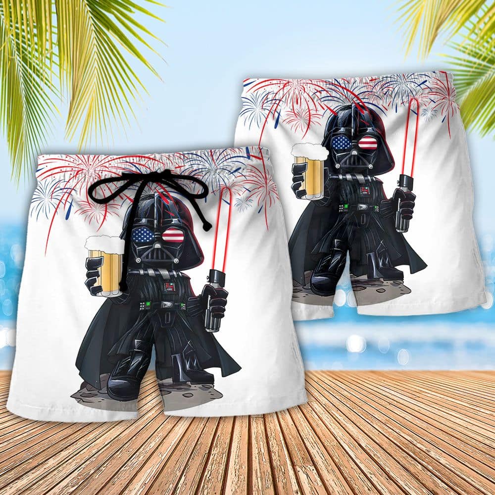 Starwars Independence Day Darth Vader With Beer Trendy KLA Hawaiian Beach Shorts