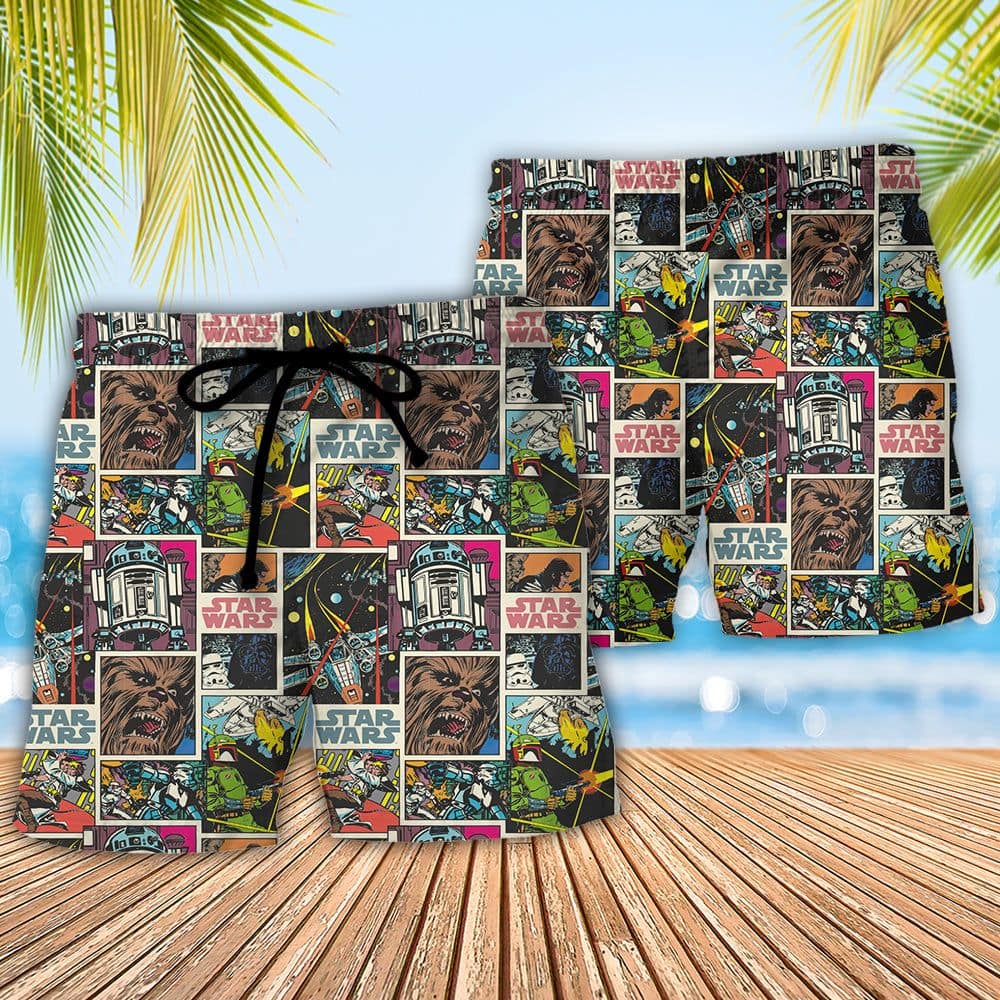 Starwars Print Comic Pattern Trendy KLA Hawaiian Beach Shorts
