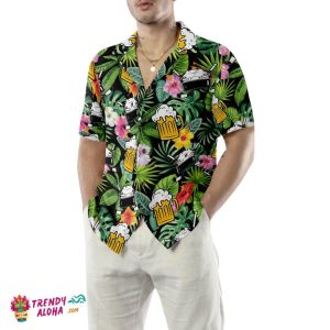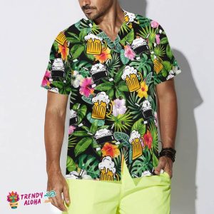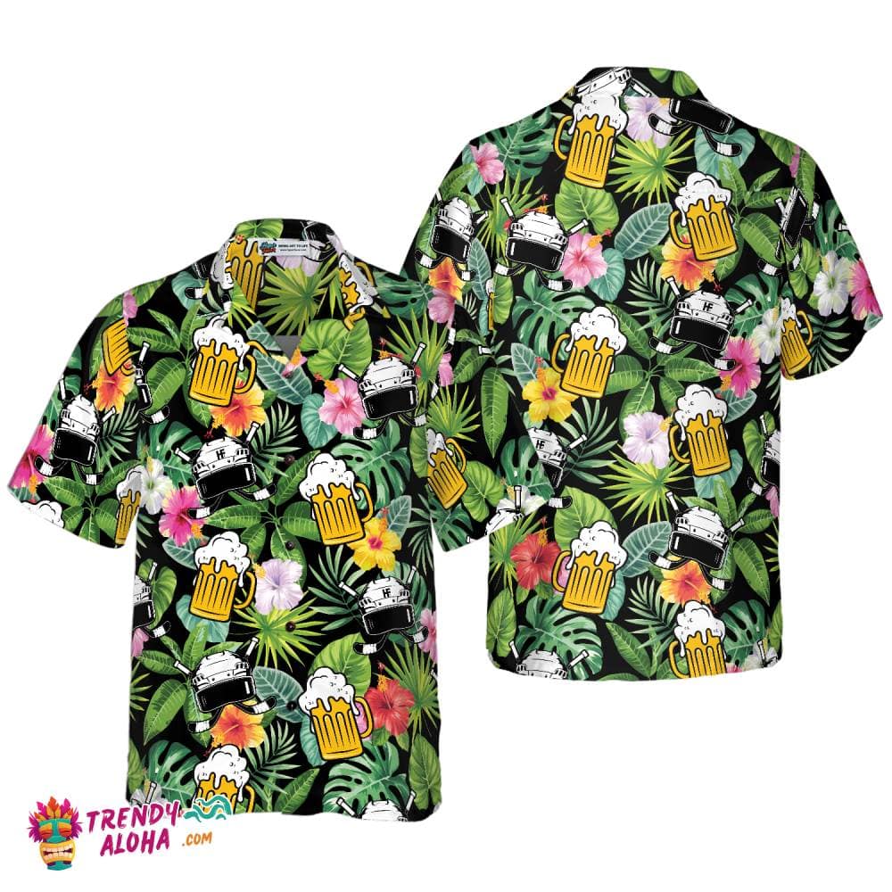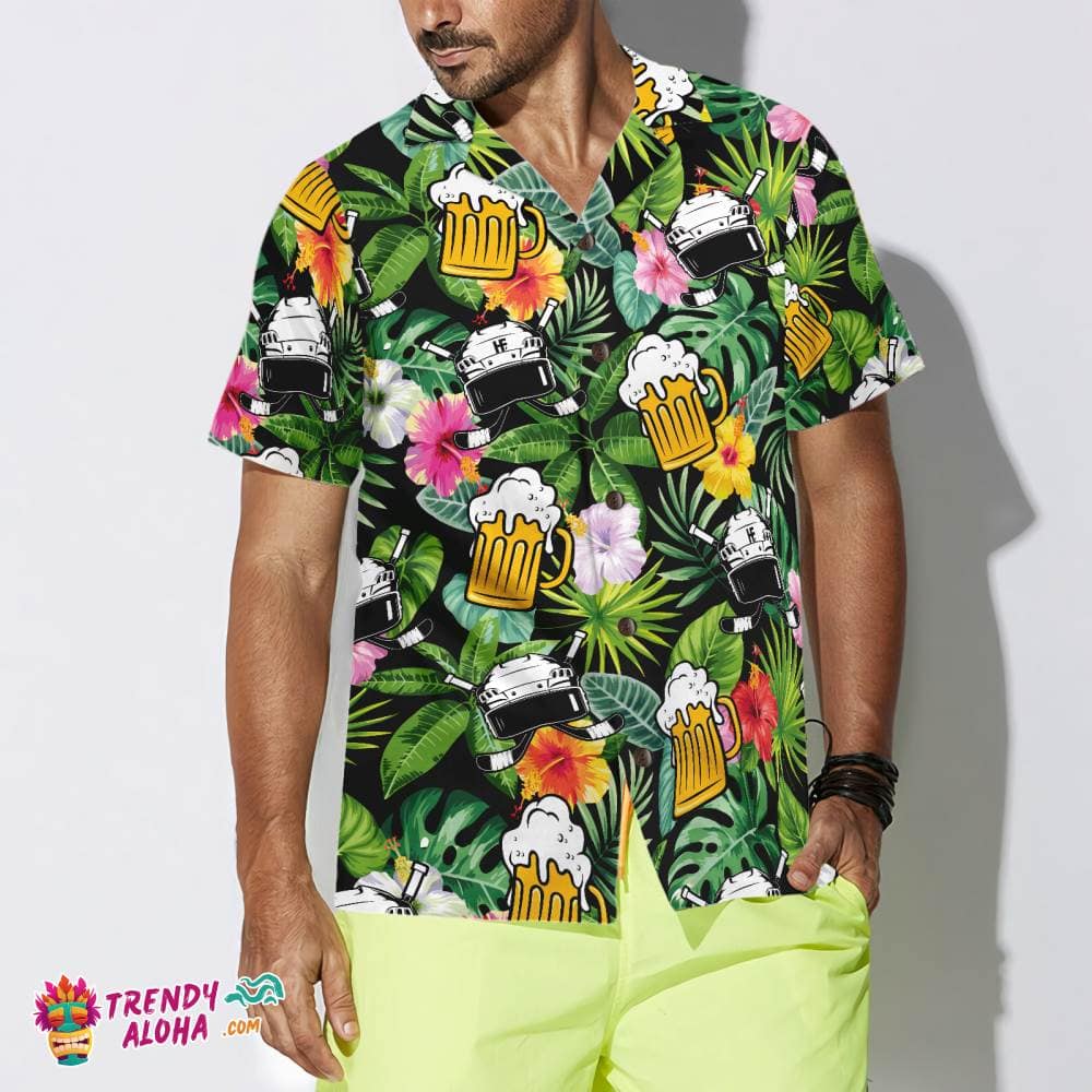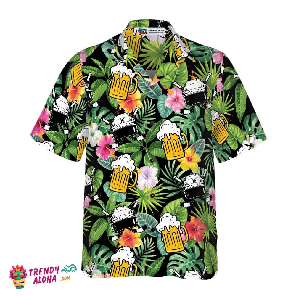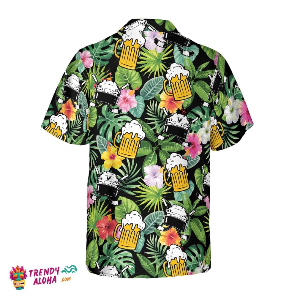 Exciting Hockey and Beer Themed Fun in a Hawaiian Shirt Design