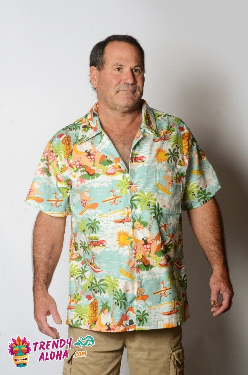 Be the first to review “Surfin’ Santa Festive Wave Riding Pattern Hawaiian Xmas Shirt” Cancel reply