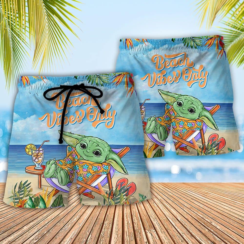 You’re viewing Sw Cartoon Baby Yoda Beach Vibes Only Trendy KLA Hawaiian Beach Shorts.