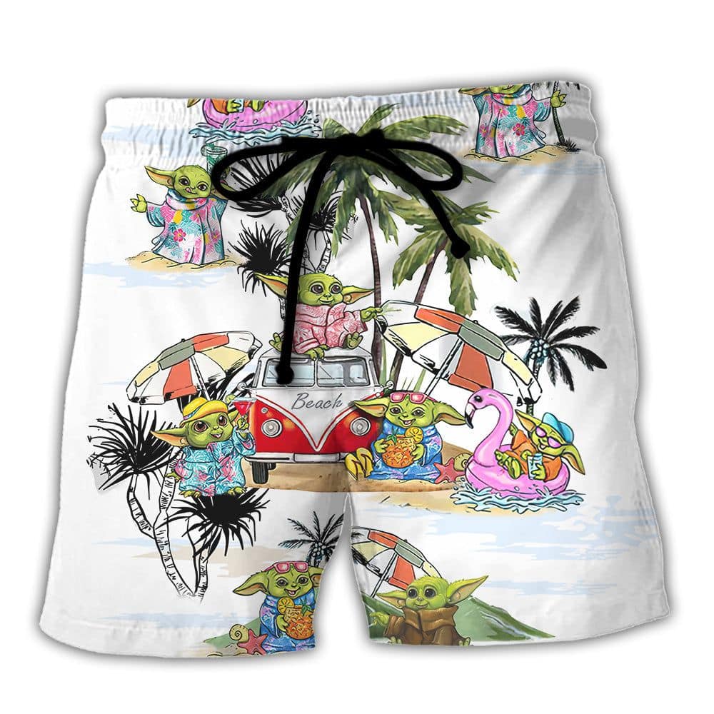 Sw Cartoon Baby Yoda Trendy KLA Hawaiian Beach Shorts