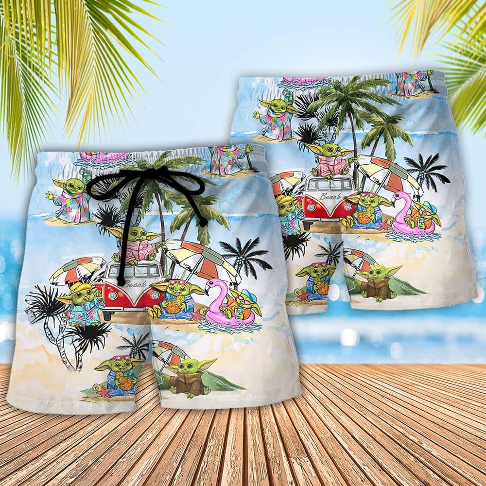 Sw Disney Baby Yoda So Cool Trendy KLA Hawaiian Beach Shorts