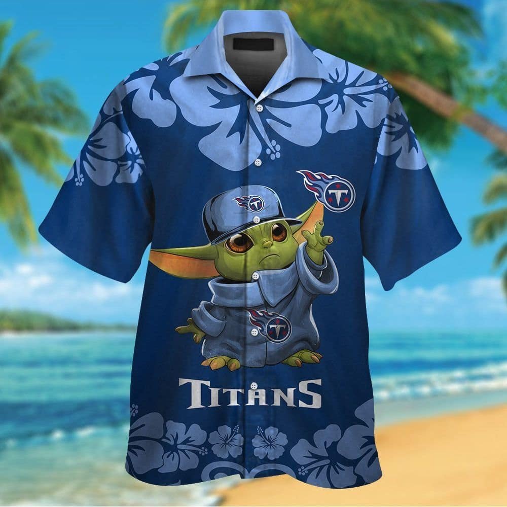 Tennessee Titans Baby Yoda Short Sleeve Button Up Tropical Hawaiian Shirt