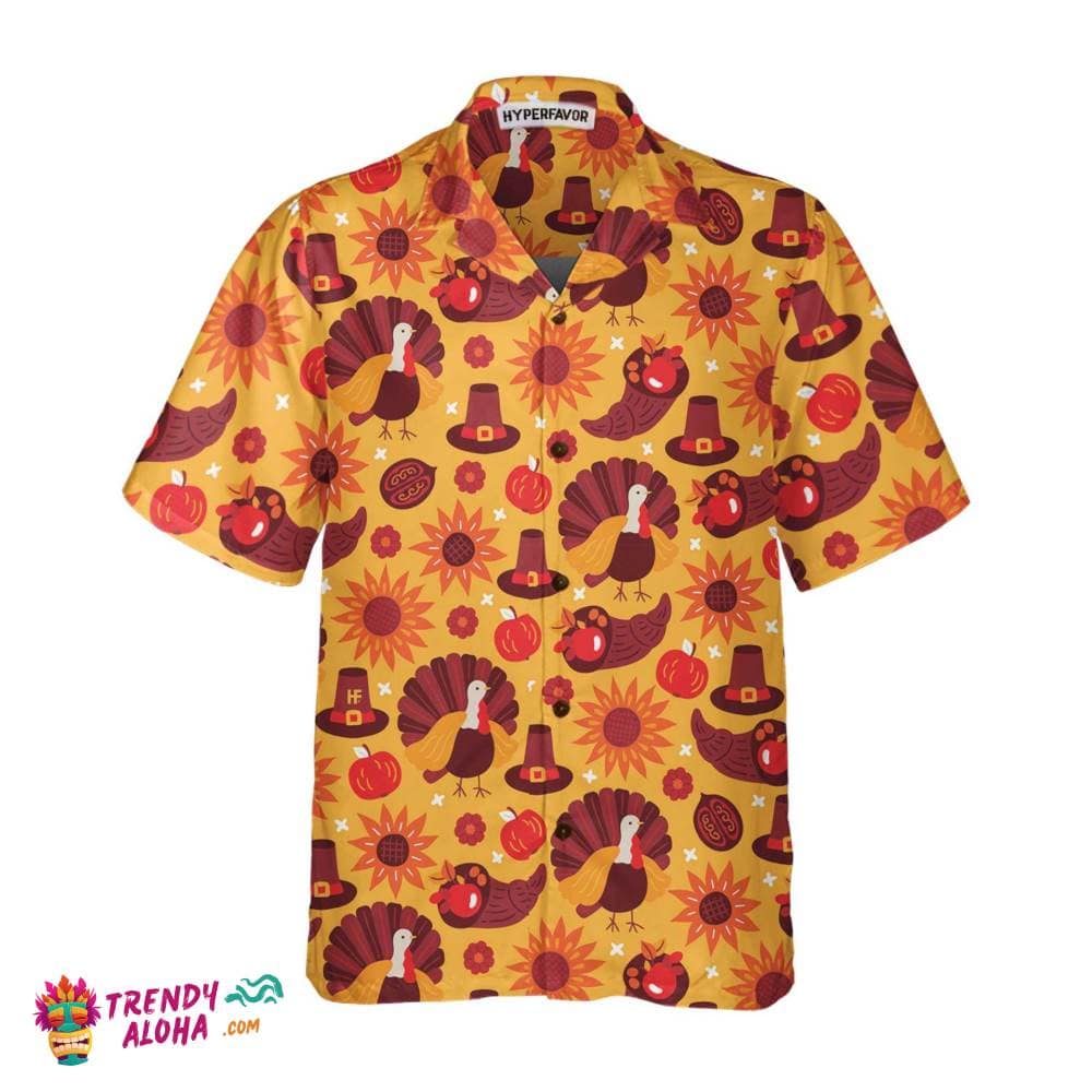 You’re viewing Thanksgiving Day Pattern Turkey Pumpkin Hat Hawaiian Shirt, Thanksgiving Gobble Shirt, Gift For Thanksgiving Day.
