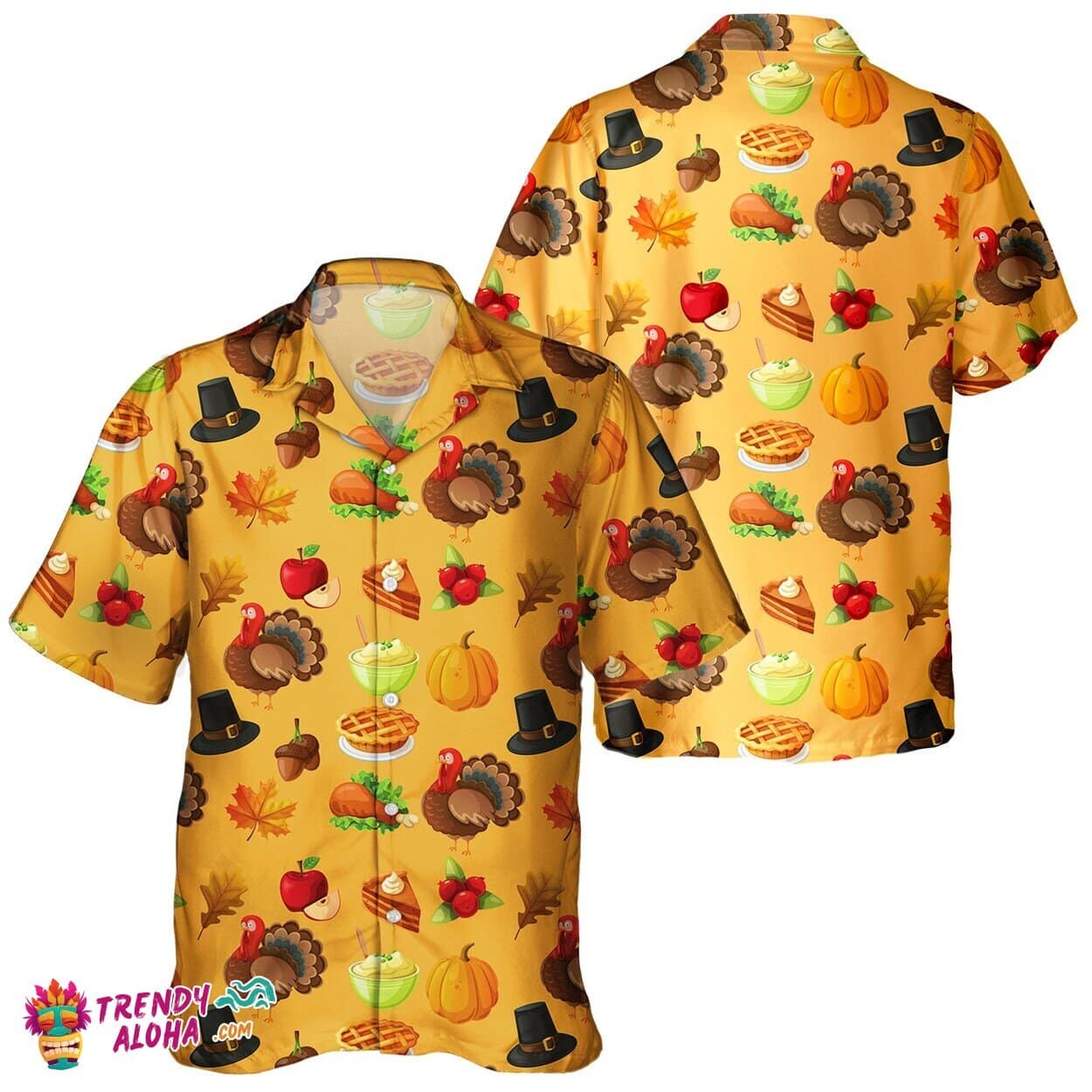 Thanksgiving Day Pumpkin Leaves Turkey Unisex Hawaiian Shirt