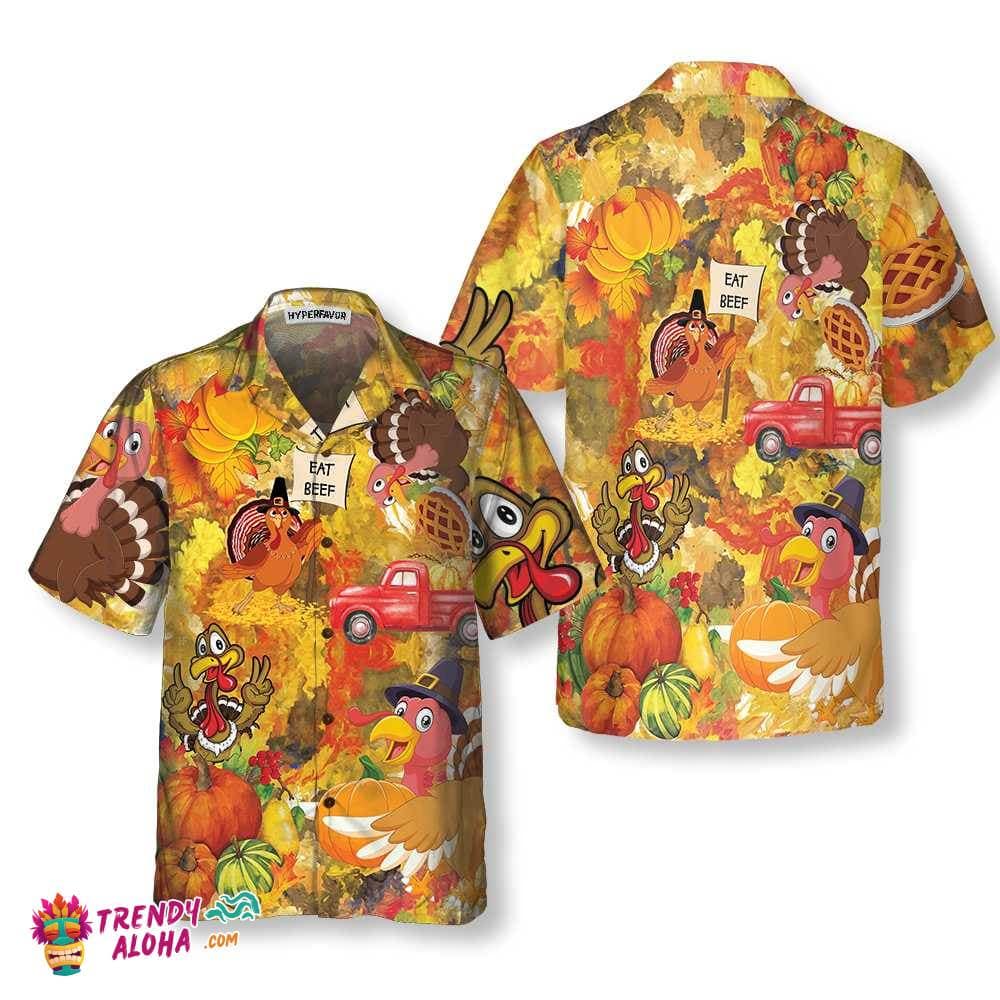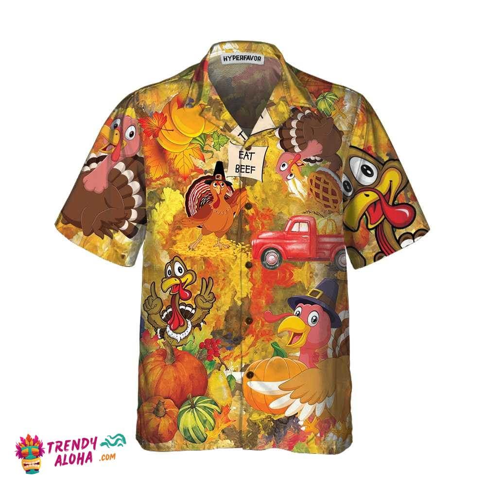 Thanksgiving Turkey Eat Beef Hawaiian Shirt, Funny Gobble Shirt, Gift For Thanksgiving Day