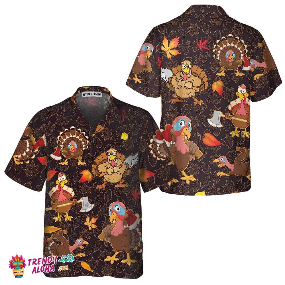 Thanksgiving Turkey Holding An Axe Hawaiian Shirt, Funny Turkey Gobble Shirt, Gift For Thanksgiving Day