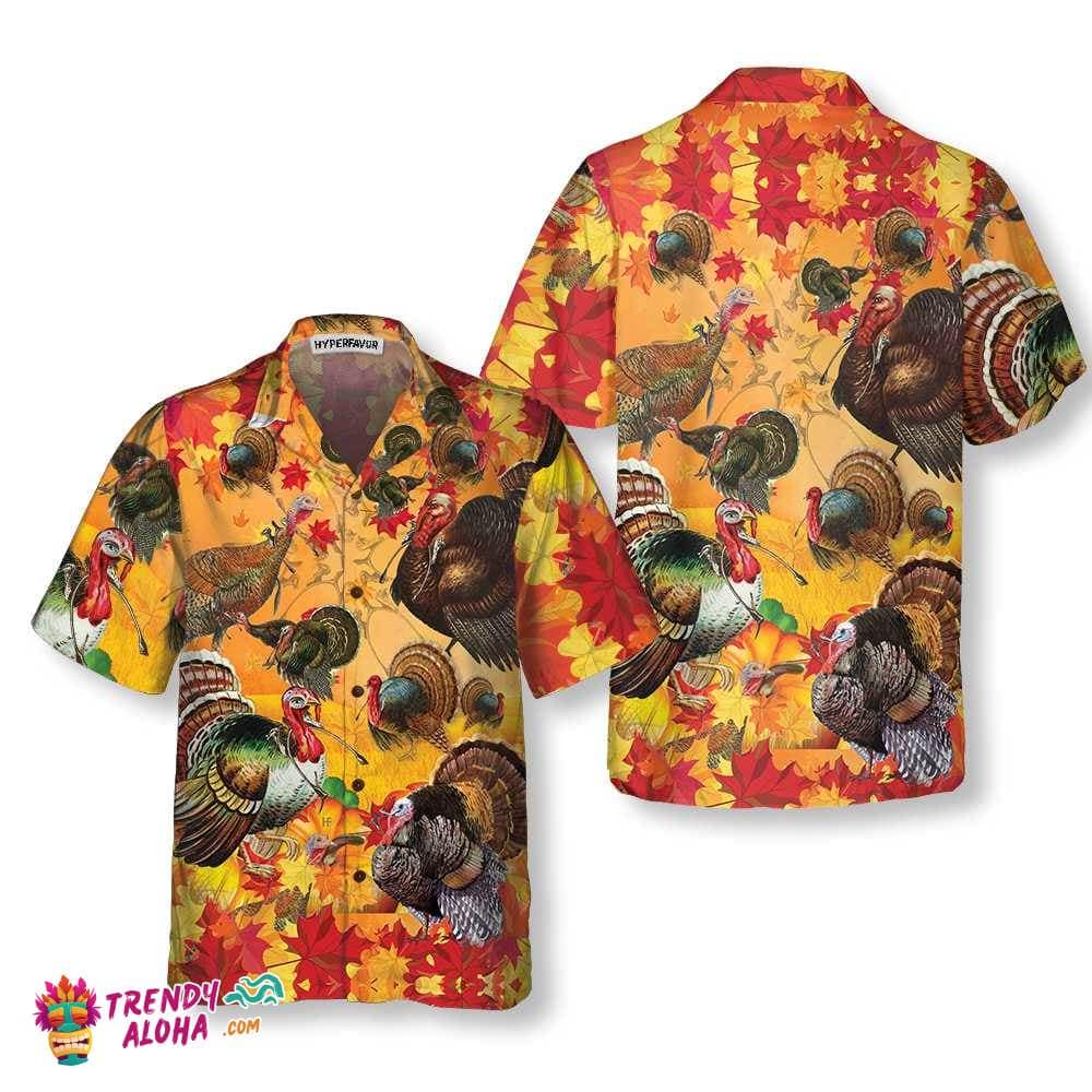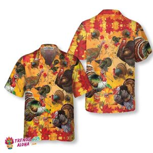 Autumnal Turkey with Leaves Unisex Hawaiian Shirt for Thanksgiving Day