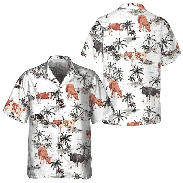 Tropical Island And Cows Pattern All Printed 3D Trendy Hawaiian Shirt, Summer Gifts For Men And Women