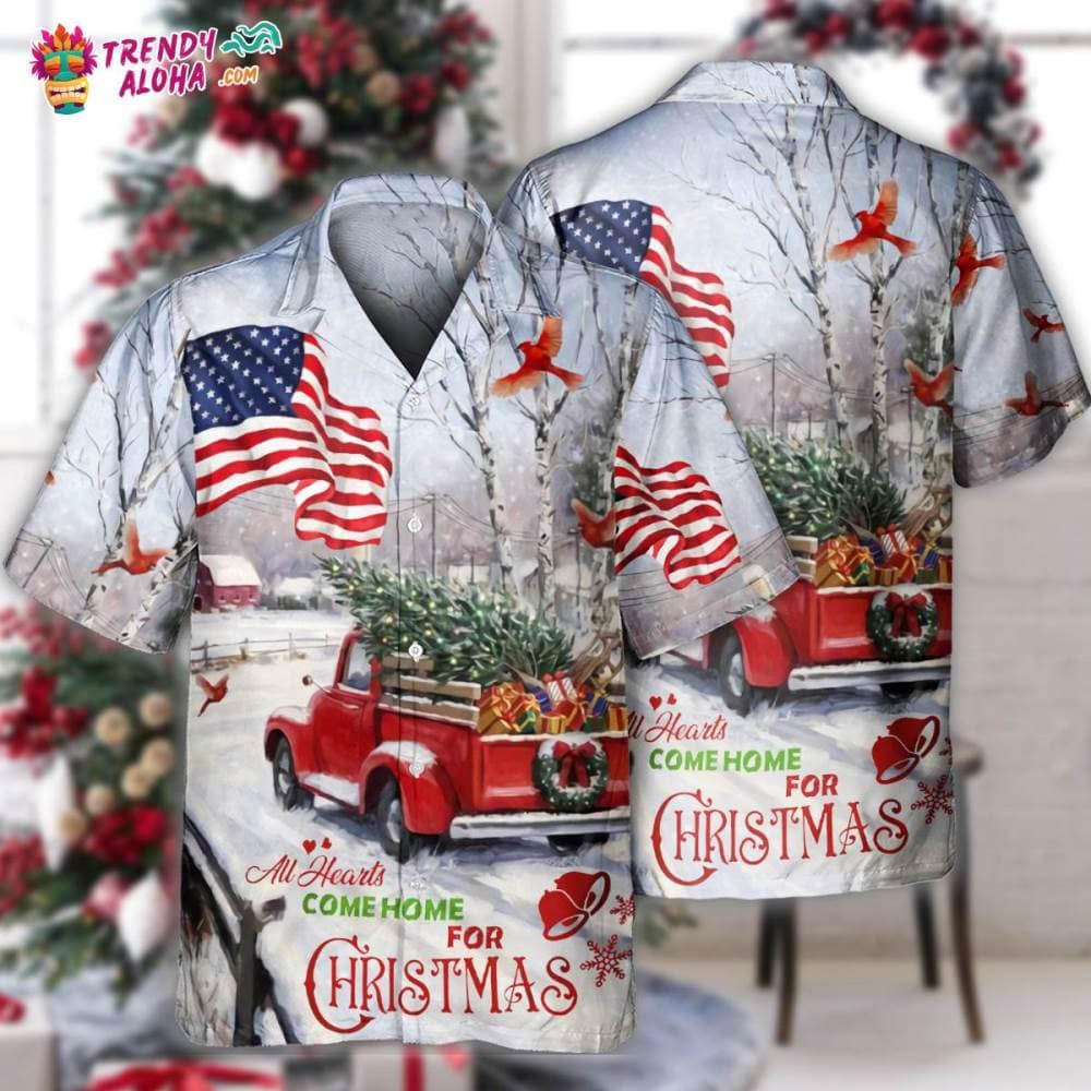 Truck All Hearts Come Home For Christmas Truck With Cardinal And Snow Hawaiian Shirt – Trendy KLA