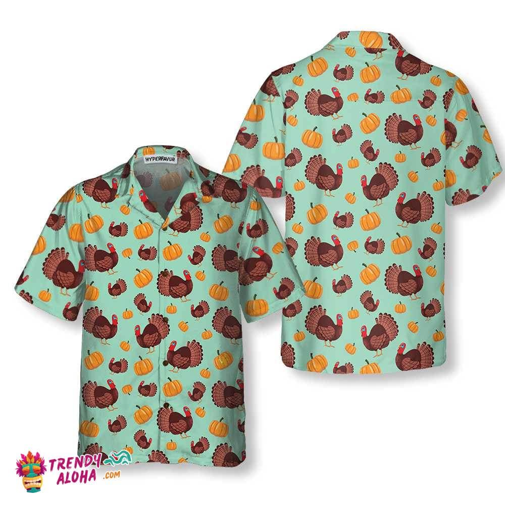 You’re viewing Turkey And Pumpkin For Thanksgiving Holiday Hawaiian Shirt, Unique Gift For Thanksgiving Day.