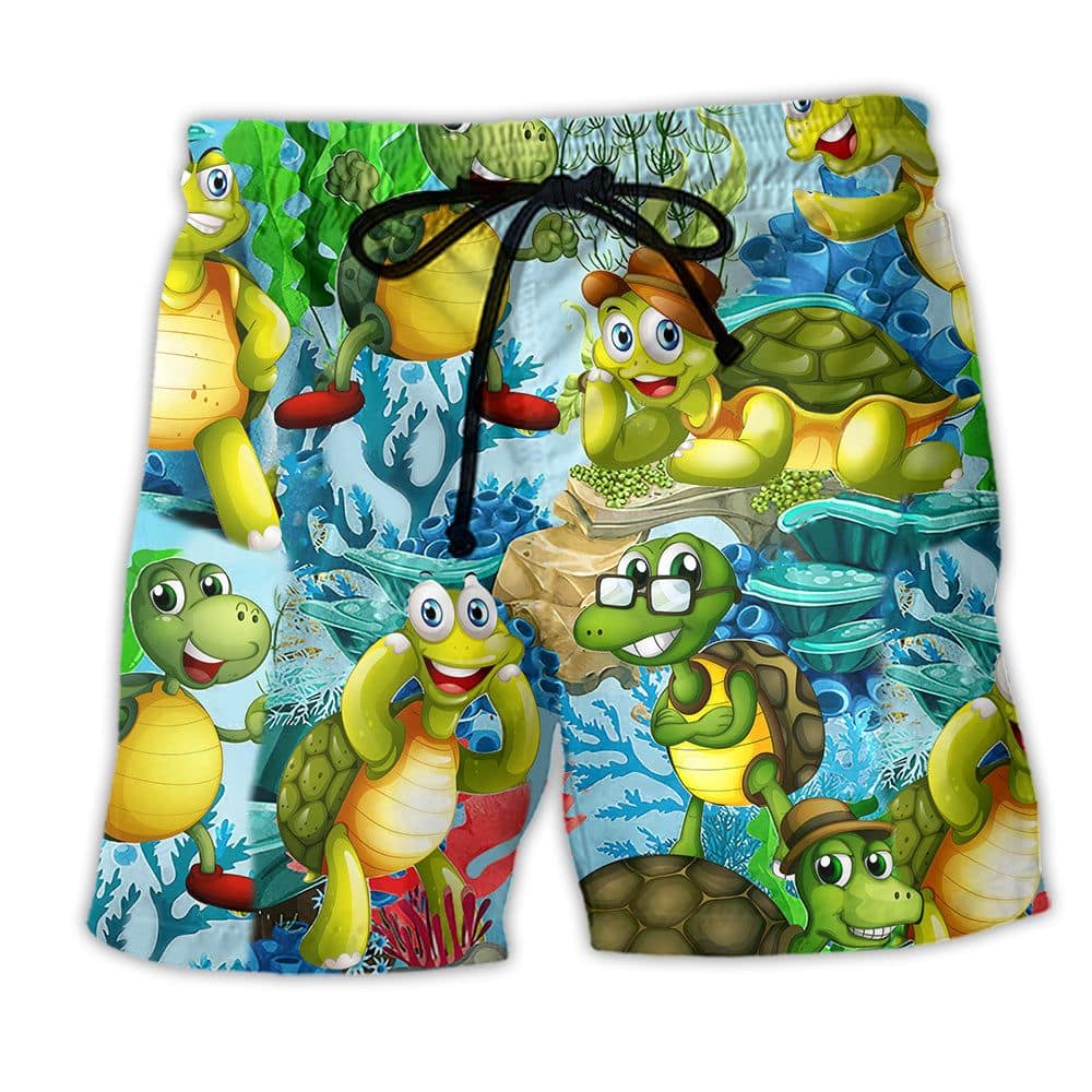 Turtle Mini Happy Funny Style Trendy KLA Hawaiian Beach Shorts