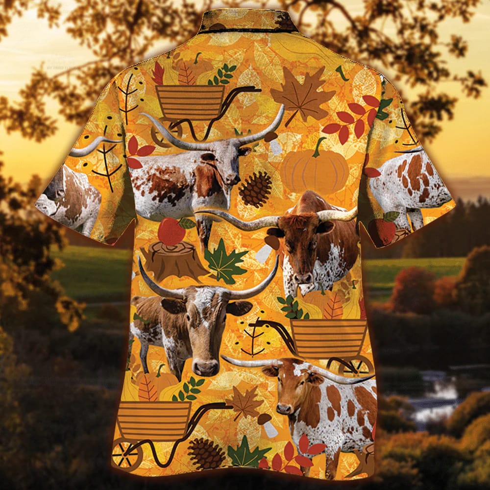 You’re viewing Tx Longhorn Cattle Lovers Orange Nature Autumn Trendy Hawaiian Shirt, Cow Trendy Hawaiian Shirt For Summer Gifts.