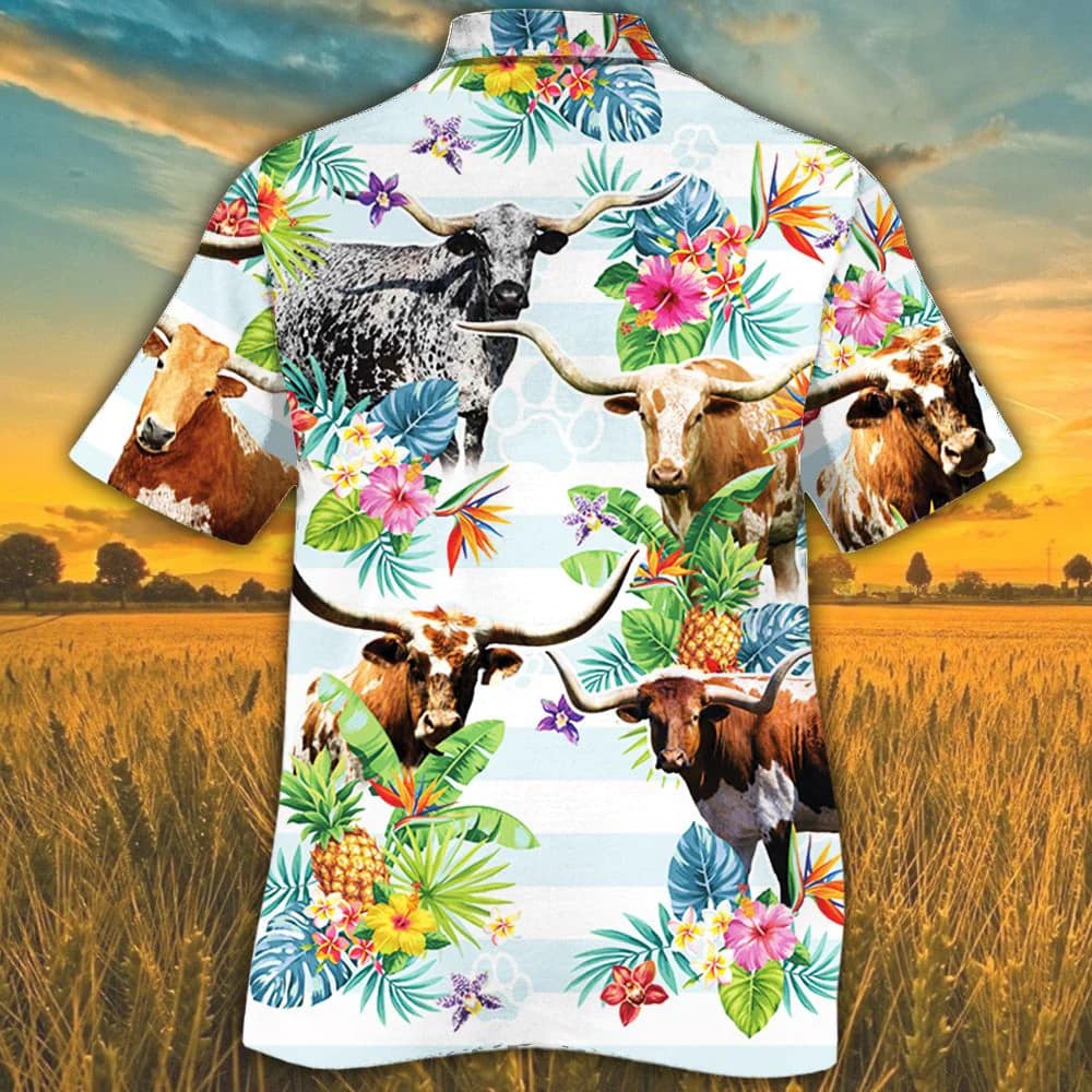 Tx Longhorn Cattle Lovers Tropical Flower Trendy Hawaiian Shirt, Cow Trendy Hawaiian Shirt For Summer Gifts
