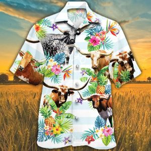 You’re viewing Tx Longhorn Cattle Lovers Tropical Flower Trendy Hawaiian Shirt, Cow Trendy Hawaiian Shirt For Summer Gifts.