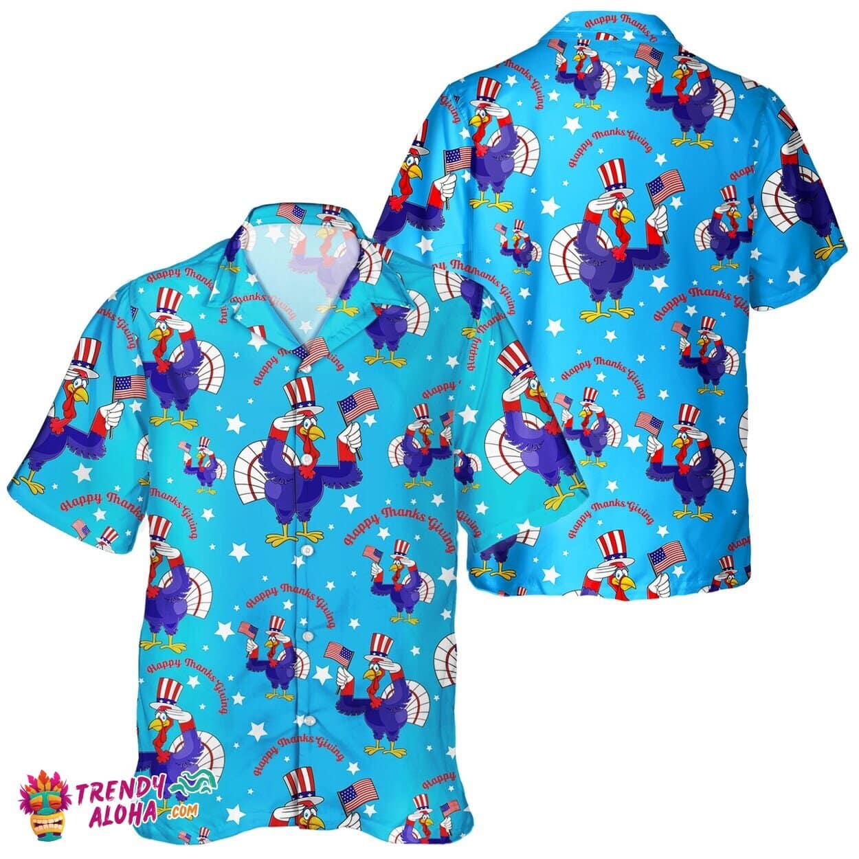 USA Flag Turkey Lover Unisex Hawaiian Shirt Celebrating Thanksgiving