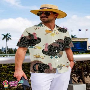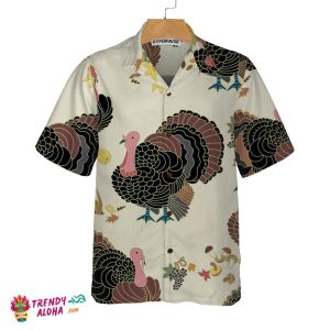 Autumnal Turkey with Leaves Unisex Hawaiian Shirt for Thanksgiving Day