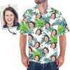 Custom Face Hawaiian Shirts Personalised Photo Gift Men’s Christmas Shirts Flower And Leaves