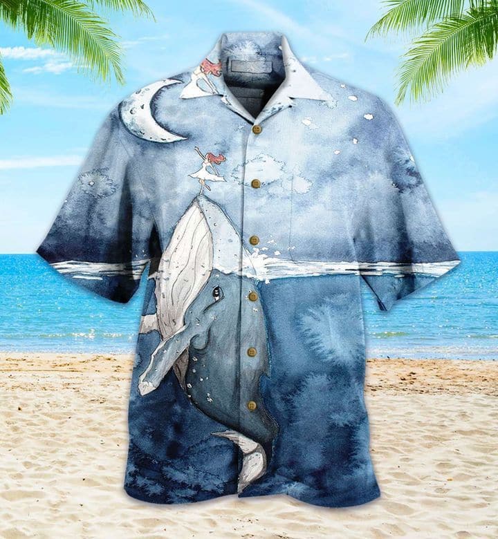 You’re viewing Whale Moon Blue Trendy Hawaiian Shirt 3D Summer Gifts.