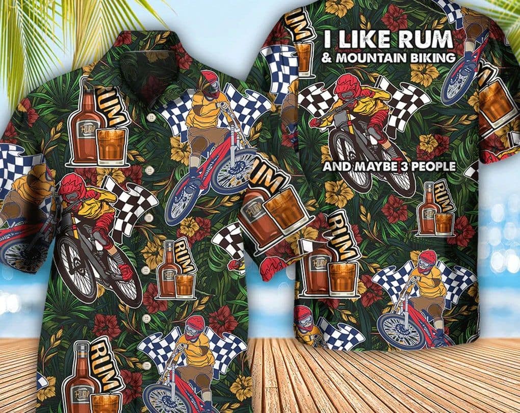 Wine I Like Rum And Mountain Biking, Tropical Beach Shirt Button Down Shirt, Funny Trendy Hawaiian Shirt, Best Gifts For Men, Hawaiian Set Gift.