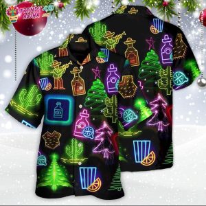 Wine Tequila Christmas Neon Art Drinking Hawaiian Shirt – Trendy KLA